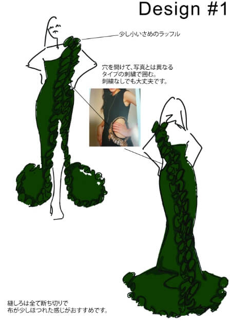 スリットを入れて足を見せたり、ウエストにカットを入れて、ウエストを見せたり..