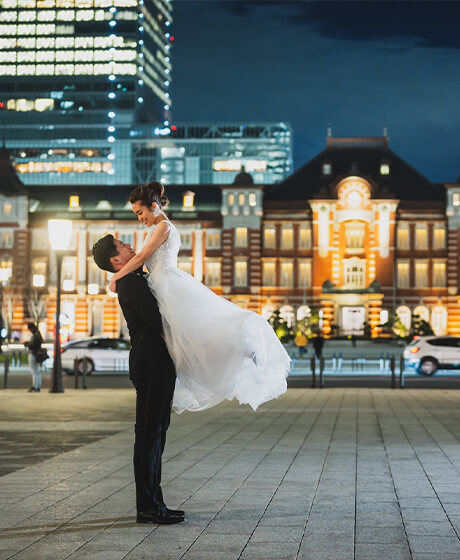 これからのお二人の明るい未来に向かって、手を繋いで仲良く歩くシーンです。