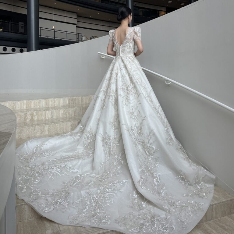 ドレスのシルバー刺繍と相まって非常に美しいです。