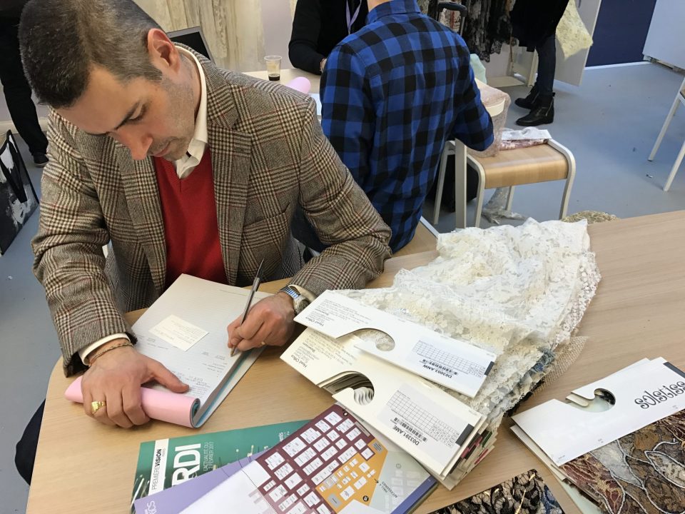 年に数回、パリや上海で行われる生地の展示会に足を運び
