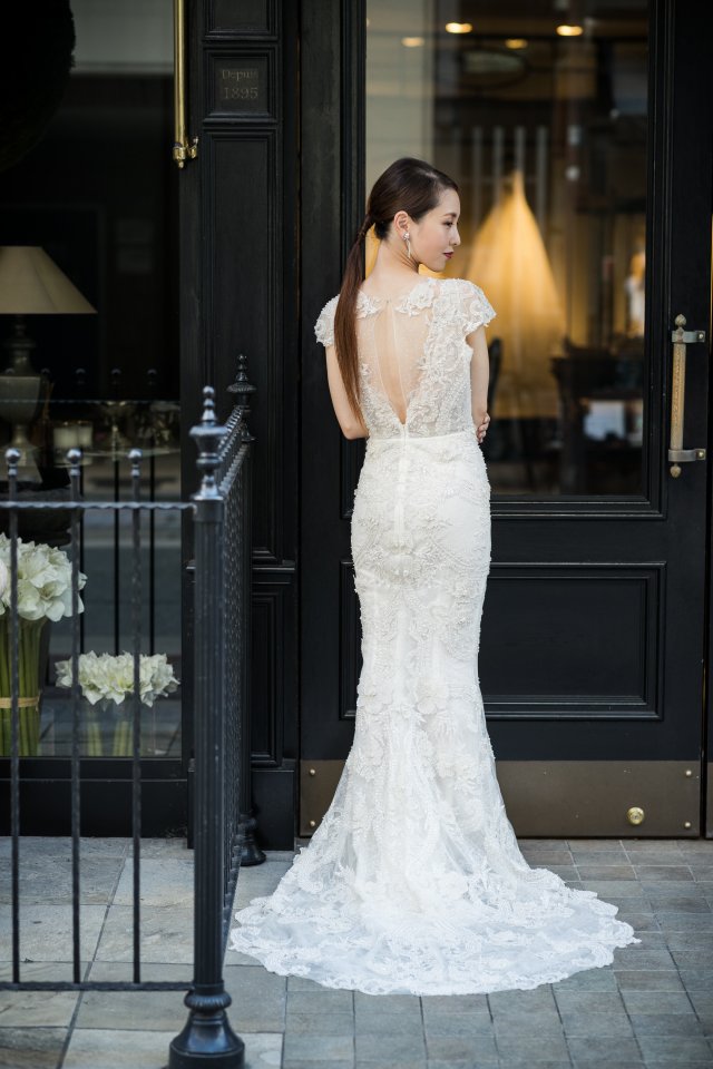 バックスタイルは肌が美しく透けるデザインで、後ろ姿からも