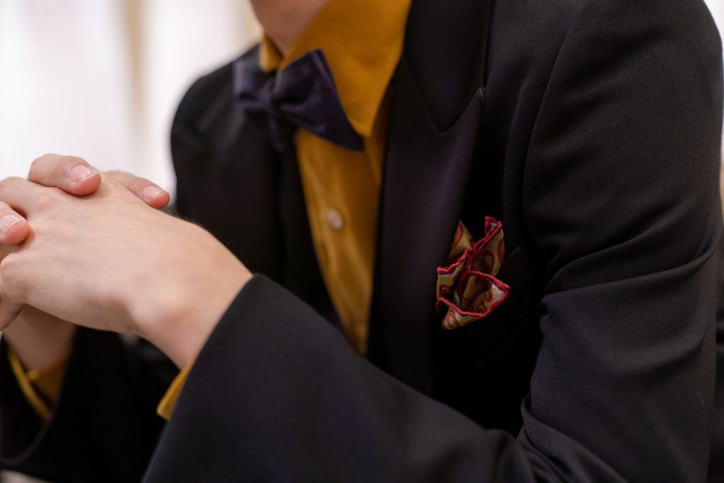 花嫁様のドレス姿を綺麗に見せるためにはタキシードの着こなしもこだわらなければなりません。