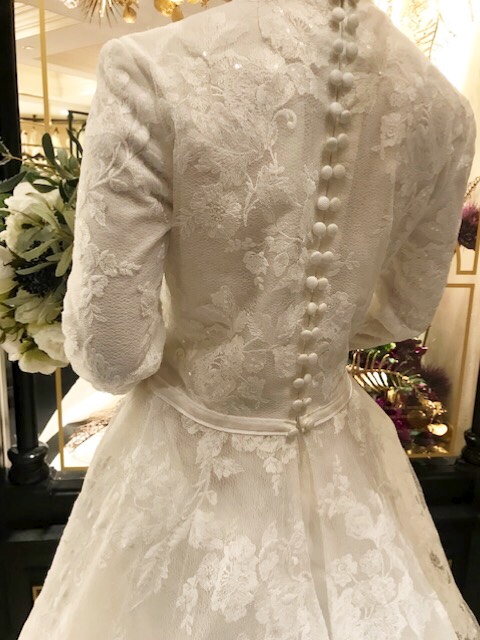後ろのくるみボタンは、合わせボタンになっており細部までこだわった特別感のあるドレスです。