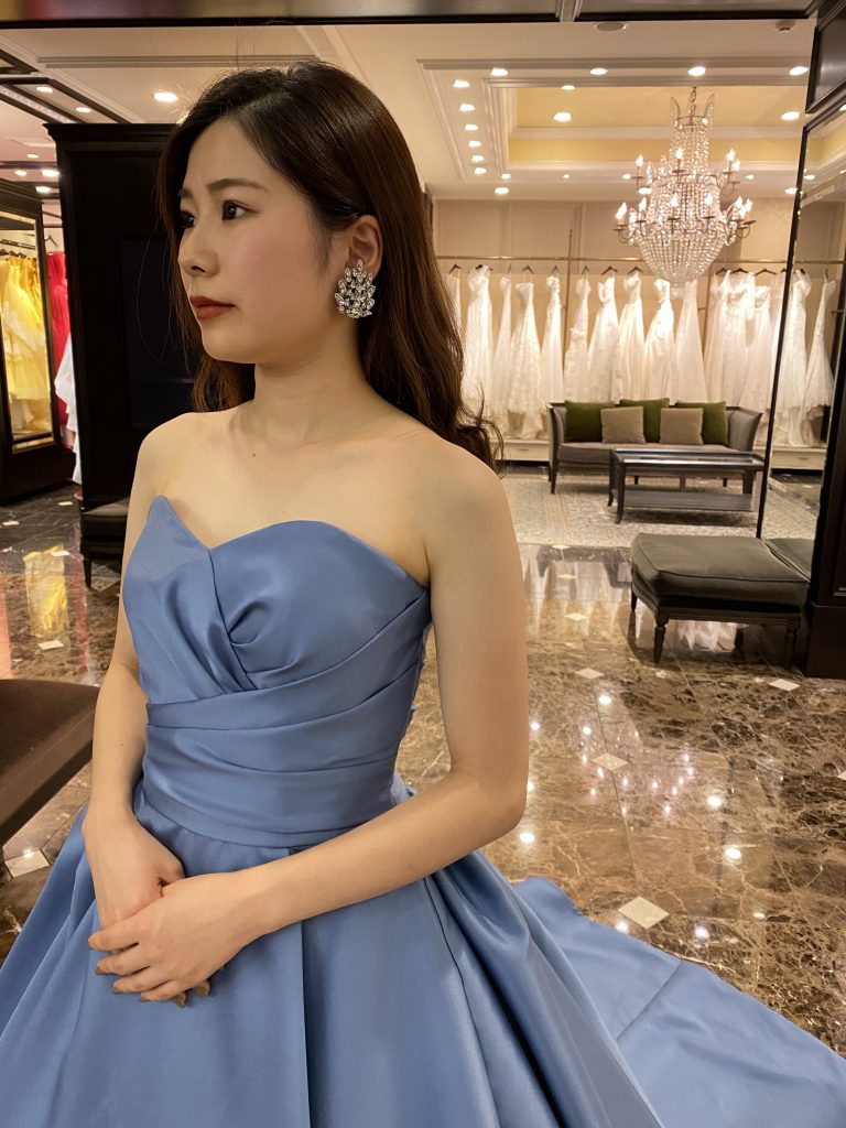 とろみ感のある質感で、会場のスポットライトが当たるとより光沢が増し、エレガントな雰囲気でお召いただけます。