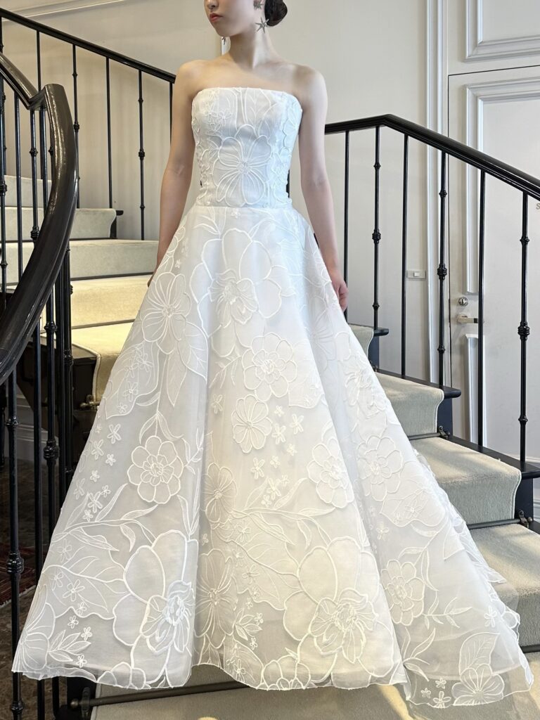 ご披露宴会場で、ひときわ美しくラグジュアリーな花嫁を演出してくれる一着です。