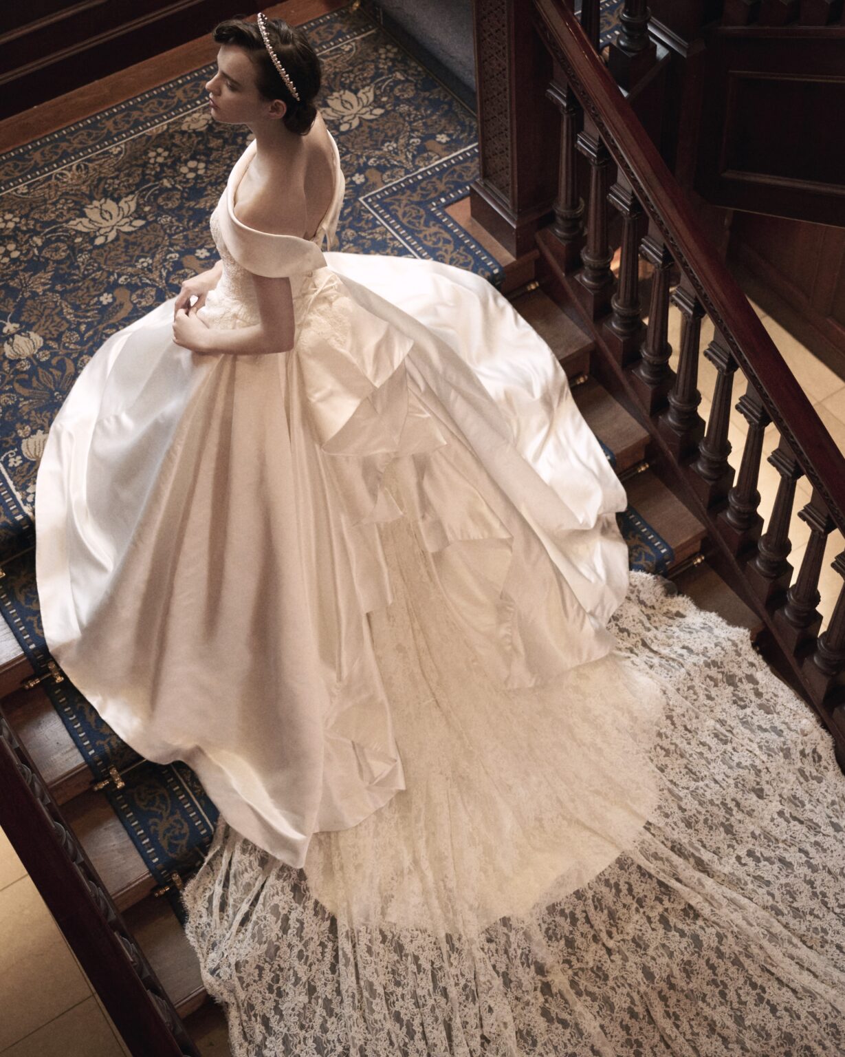 上品な光沢を放つ上質なサテンドレスがタイムレスかつクラシカルな雰囲気を放ち、花嫁の凛とした美しさを引き立てます。 このドレスの魅力は、“自分らしさを選べる”自由度の高さ。 付属アイテムのロールカラーでエレガントに、繊細なレースのショルダーアイテムでフェミニンなスタイルに。 またネックラインに加え、さらにバックスタイルも、変化を楽しめます。 シンプルなノーボウで潔く、愛らしい印象を与えるボウスタイル。 そしてロングのレーストレーンはフック仕様で2パターンに長さ調整ができる優れものです。 挙式・披露宴・前撮りなど、シーンによって違う魅せ方をお楽しみください。