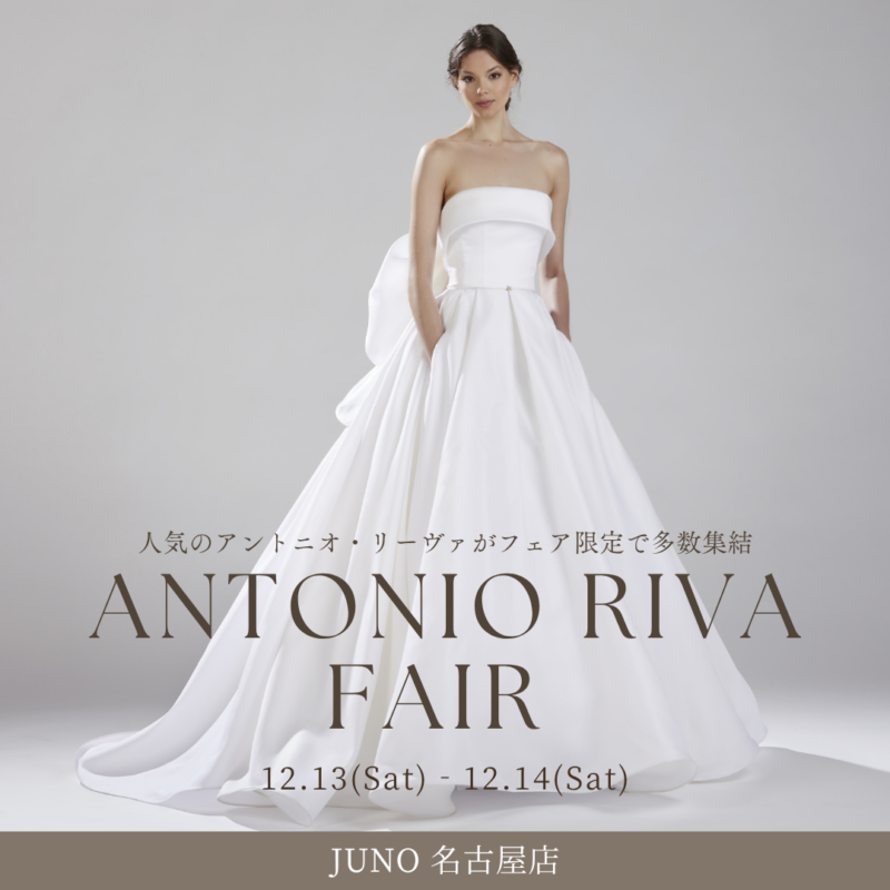 花嫁様から絶大な指示を誇るANTONIO RIVA(アントニオ リーヴァ)を豊富に揃えた"ANTONIO RIVA FAIR"を、JUNO名古屋店にて開催いたします。