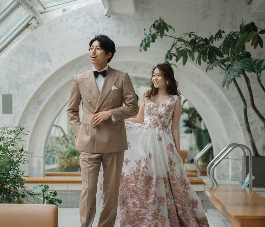 ”Eternal Elegance”をコンセプトに、時を超えてもいつの時代にも最愛の1日にふさわしいドレスやタキシード、和装を厳選しているJUNOよりこちらのプランのための衣裳をセレクトしています。お写真に残した時にこそ伝わる、本物の美しさに溢れた衣裳にぜひ触れて、感じていただければと思います。