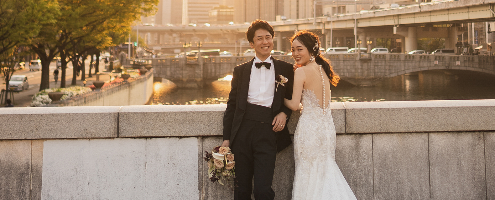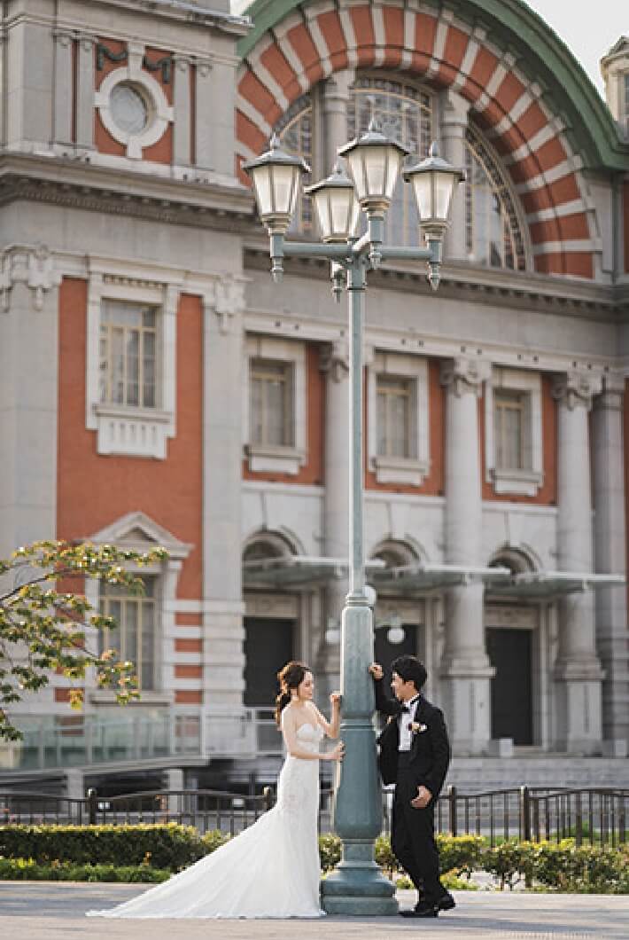 特別なフォトウエディングをこれまで二人が一緒に重ねてきた思い出の場所で、運命のドレスや和装を身に纏って特別なお写真を。いつもの街並みの中で自然体なお二人を、神社や庭園で凛とした和装姿を残して頂けます。