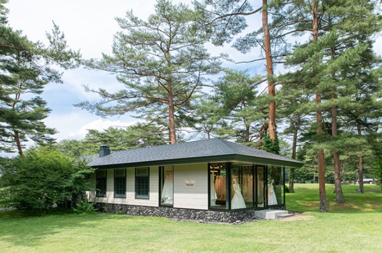 「フォレスターナ軽井沢」にて下車後ドレスサロンまで徒歩5分。