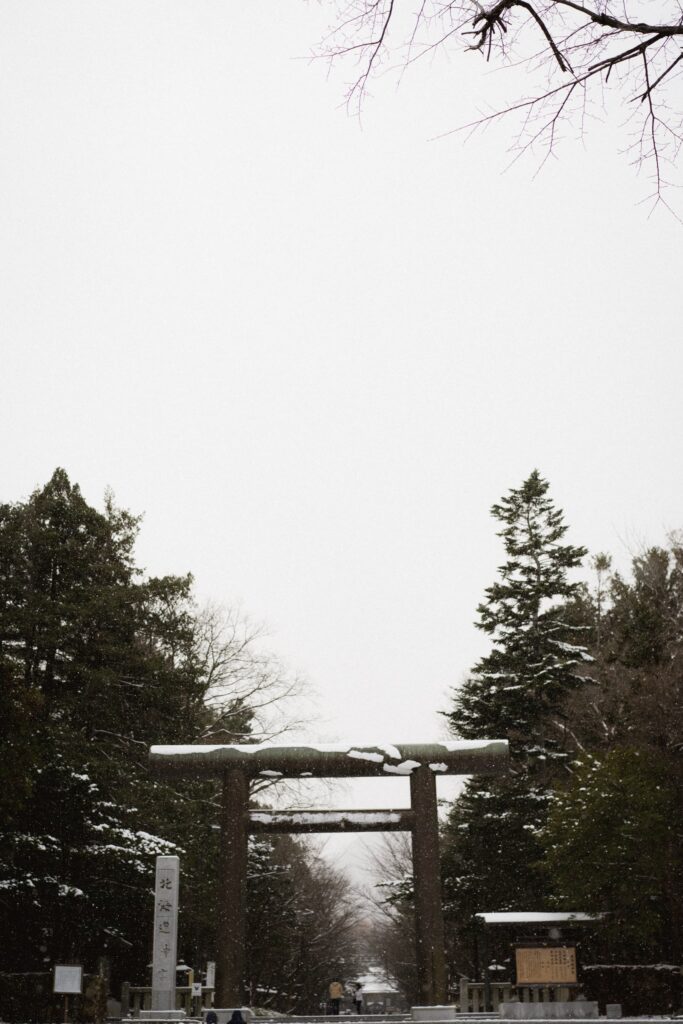 冬の北海道神宮は一面の雪に包まれ普段とは異なる静けさと厳かな雰囲気をまとっており、