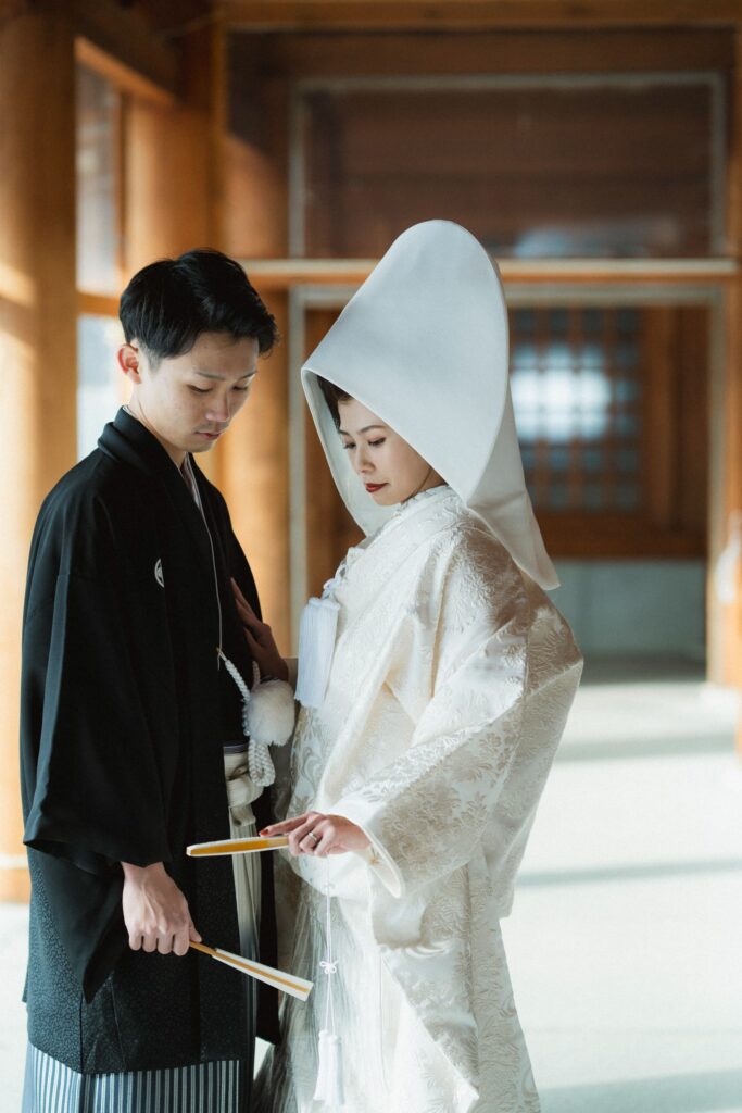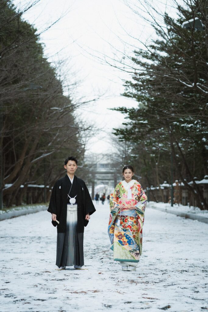 日本の伝統的な衣装を纏いお二人ならではのコーディネートとなりました。